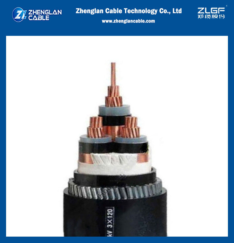 شماره مدل: 12/20(24)KV 12.7/22(24)KV ولتاژ متوسط سه هسته ای 3x120mm2 کابل برق مسی زرهی